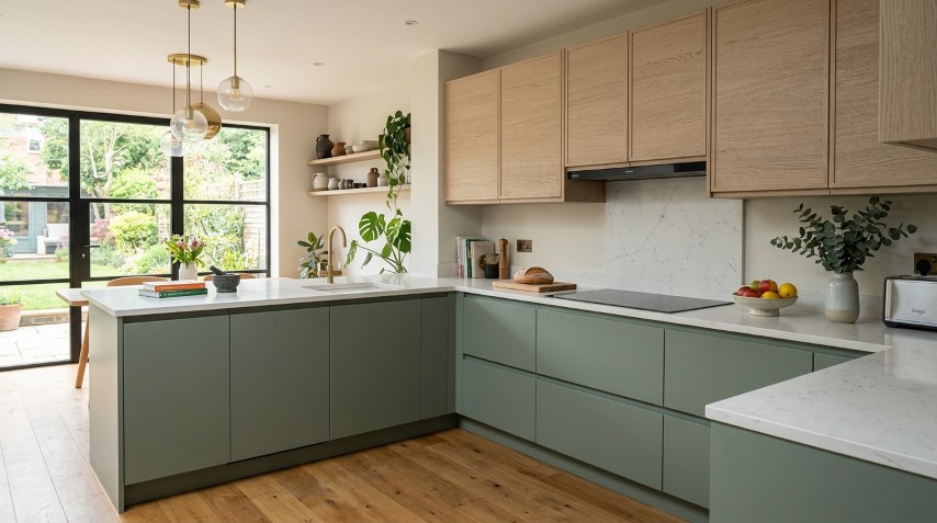 Фасады без ручек или с интегрированными системами открывания становятся все более востребованными. Они помогают сохранить чистоту линий и делают кухню более технологичной. Кроме того, такие решения удобны в ежедневной эксплуатации.